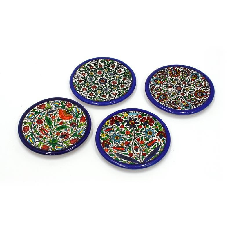 This beautiful set of ceramic coasters is hand painted using bold and bright colors creating four different floral designs. They make a lovely addition to any home and will co-ordinate well with the other stunning ceramics in this range.