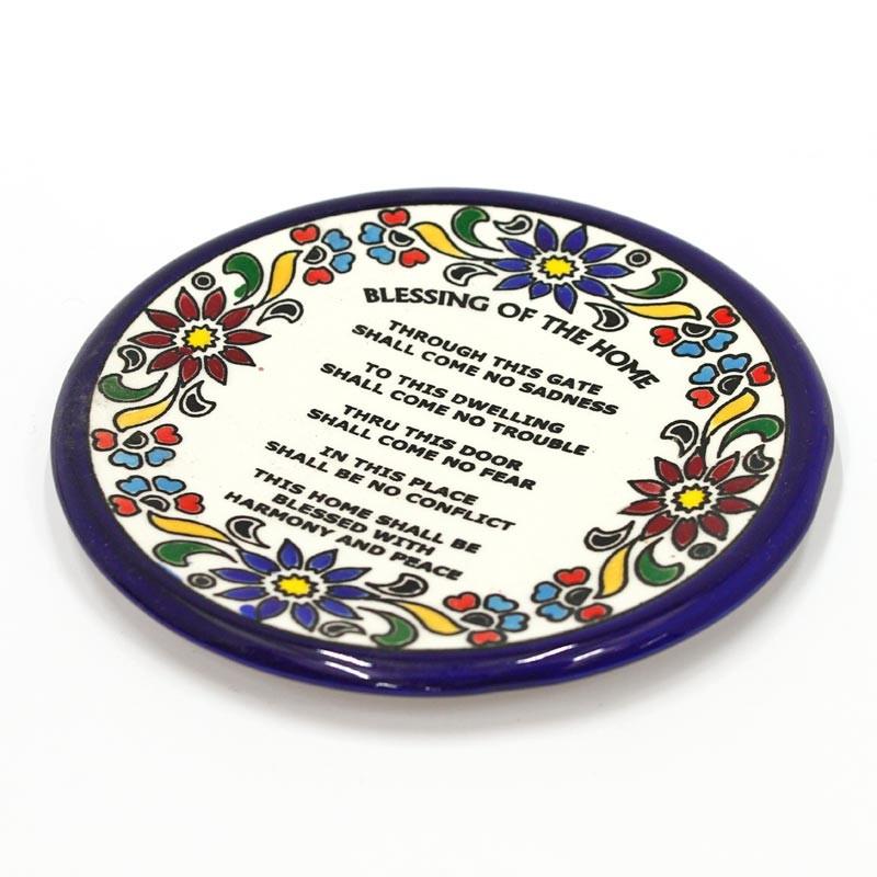This stunning ceramic flat plate is hand painted in vibrant colors and features a blessing for the home surrounded by a beautiful floral design. It is ideal used as a cake or sandwich plate and is both robust for every day use yet ornamental for display too and can be hung on the wall.