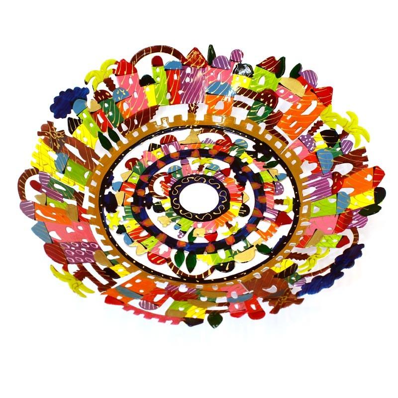 We stock a beautiful and wide range of Judaica products designed by a local artisan located here in the heart of Jerusalem. The designs are based upon a fusion of traditional motifs and ancient Jewish manuscripts with modern and oriental art. Vivid and harmonious colors as well as a mixture of the old and the new, characterise his designs. The artist, Yair Emanuel, designs and crafts in many different techniques. Among his techniques are hand embroidery, painting on wood, painting on silk and a variety of metal designs.
