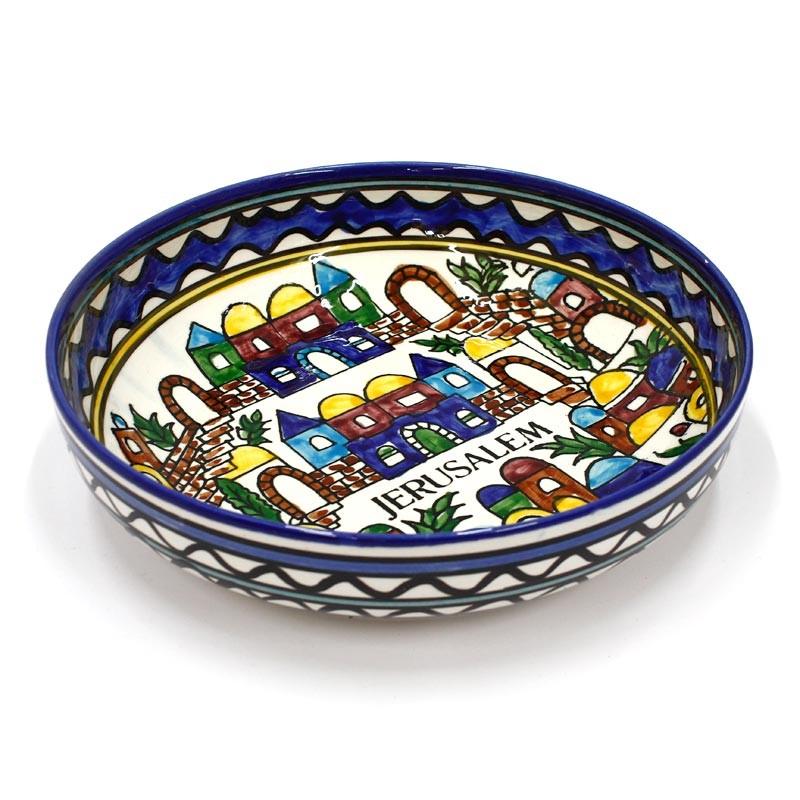 This beautiful ceramic fruit bowl is hand painted in bold and bright colors giving a stunning design of Jerusalem. Its robust nature is such that it can be used on a daily basis making it both a practical and stunning addition to any home. It is also a timely reminder of this awesome city.