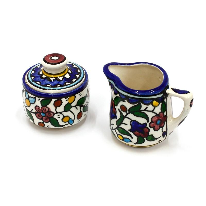 This beautiful sugar bowl and milk jug set hand painted in bold, bright colors featuring a floral design will make a stunning and practical addition to your home.