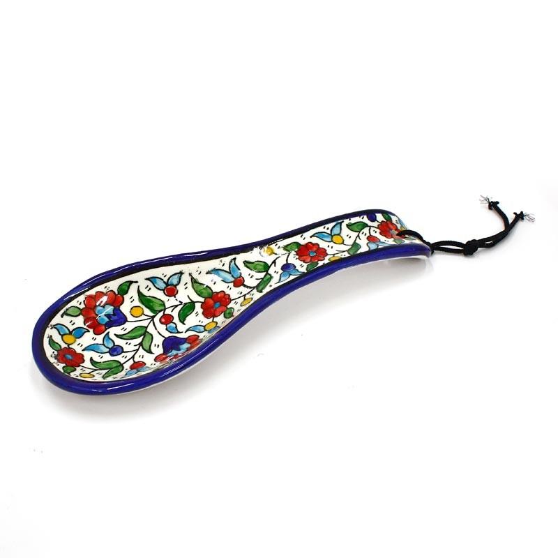 This beautiful ceramic spoon holder is hand painted in bold and bright colors featuring a lovely vibrant floral design. It can also be hung on your kitchen wall and co-ordinates beautifully with all the other kitchenware in this range.
