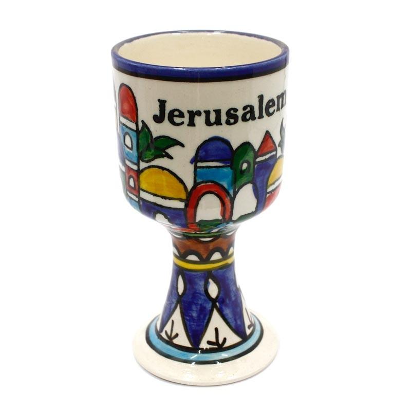 This robust yet beautifully designed wine glass, hand painted in bold, bright colors depicting the city of Jerusalem will make a stunning addition to your home and a timely reminder of this awesome city.