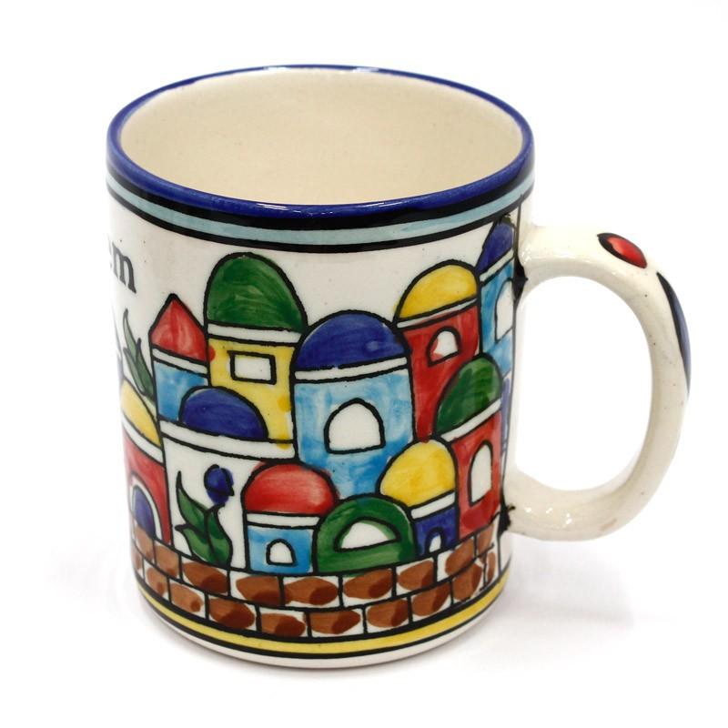 This beautiful and robust mug, hand painted in bold, bright colors depicting a design of Jerusalem is both a stunning and practical piece for every day use at home or in the office and a timely reminder of this awesome city.