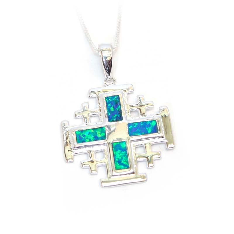 Jerusalem Cross Necklace With Opal And Sterling Silver