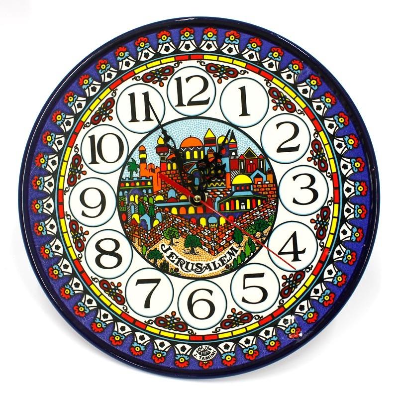 This stunning and eye catching ceramic wall clock is hand painted in bold and bright colors and features a scene of Jerusalem in the center. It is a timely reminder of this amazing city and all that it represents.
