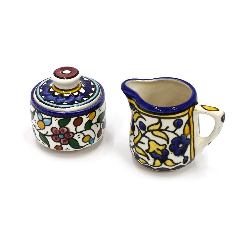 This beautiful sugar bowl and milk jug set hand painted in bold, bright colors featuring a floral design will make a stunning and practical addition to your home.