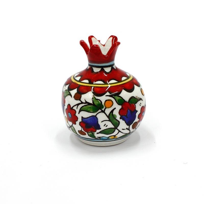 A stunning ceramic pomegranate vase/ornament, hand painted in vibrant colors featuring a lovely floral design. King Solomon is said to have designed his coronet based on the pomegranate’s “crown”.