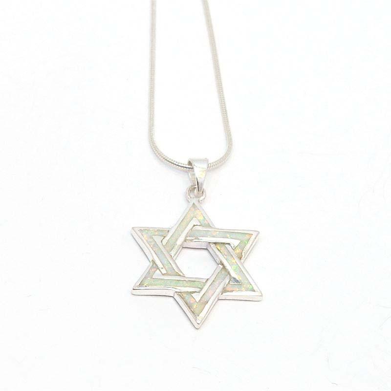 Star Of David In Sterling Silver and White Opal Pendant