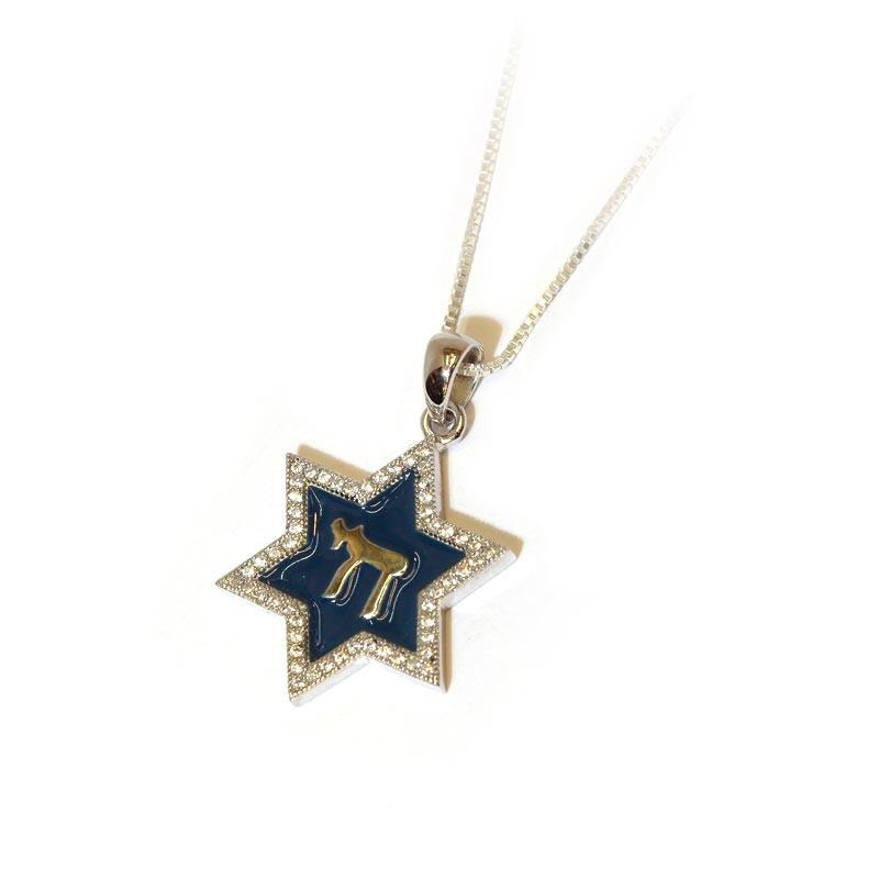 Sterling Silver Exquisite Silver Star Of David Pendant With CZ And Blue And Enamel Description Reviews (0) ₪72.00 Add to cart
