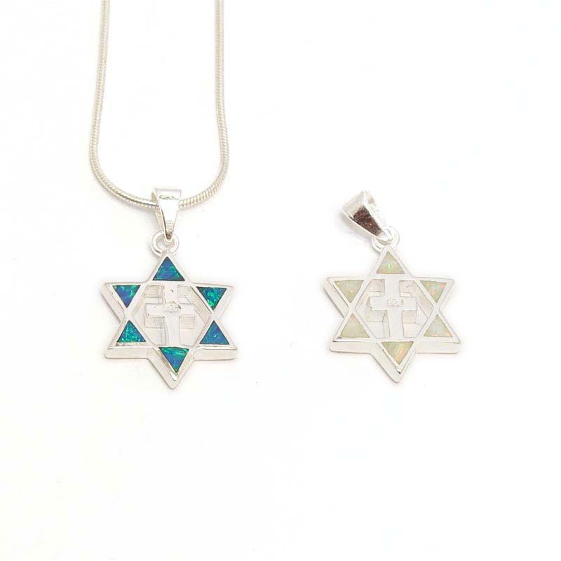 Sterling Silver Two Sided Opal Star Of David With A Cross