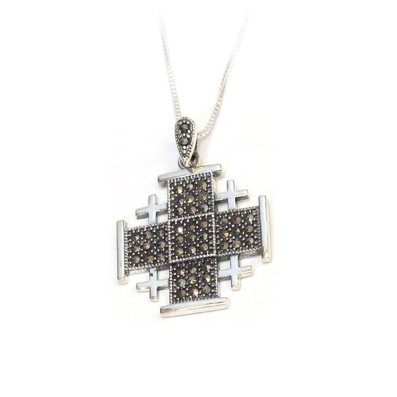 Unique Jerusalem Cross With Marcasite And Sterling Silver